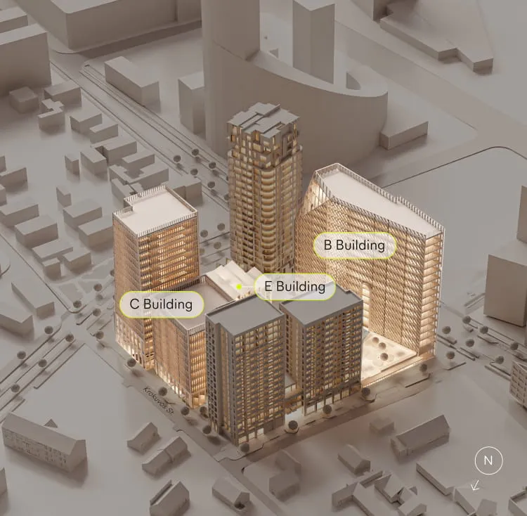 Working in a 15-minute city is a modern, sustainable approach that has been proven in leading projects worldwide. In Vilnius, this vision is realised at HORIZONTAI in the central business district. Here, everything you need for a productive workday is within a 15-minute walk or bike ride, while advanced technologies create a comfortable, efficient working environment.